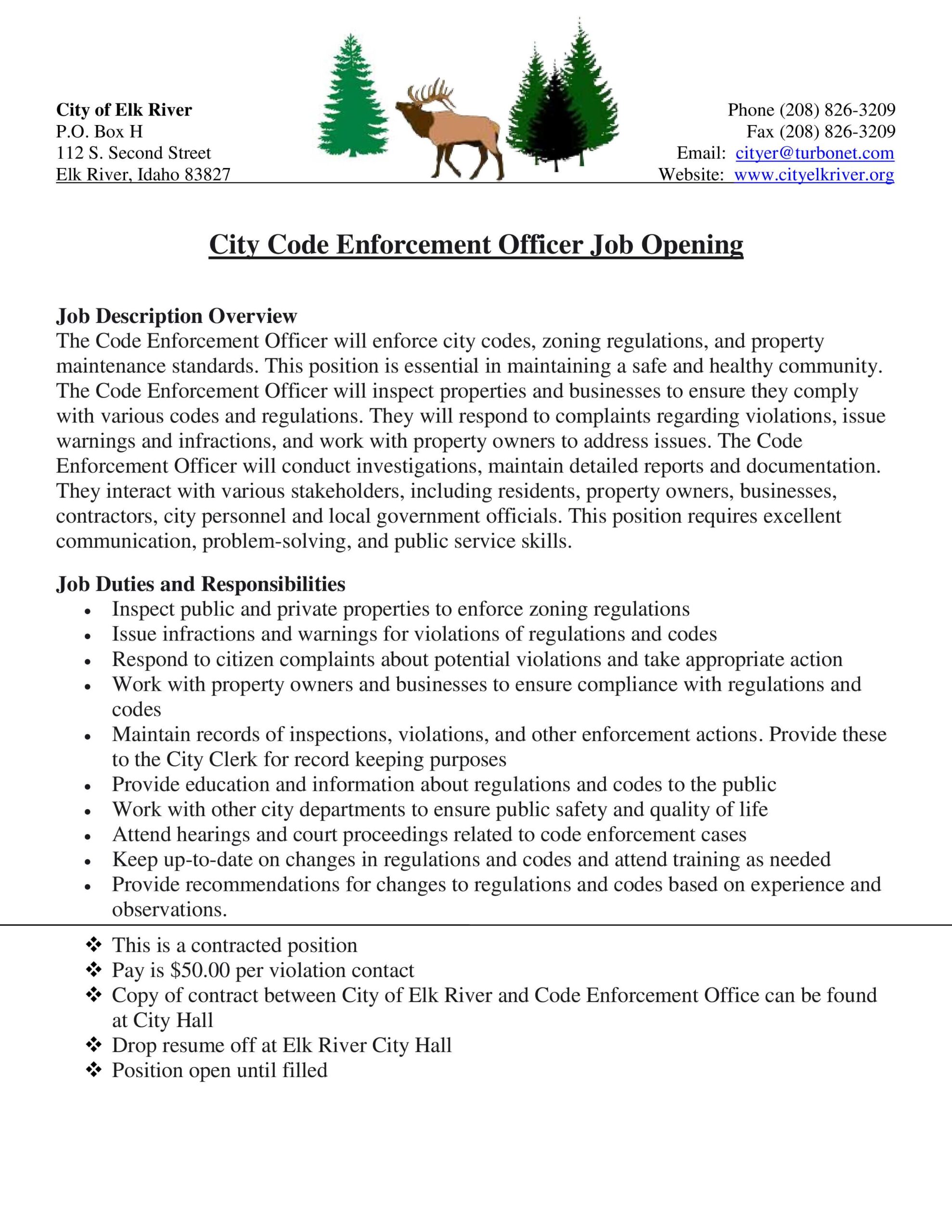 City of Elk River: 112 South Second Street, P.O. Box H, Elk River, ID 83827