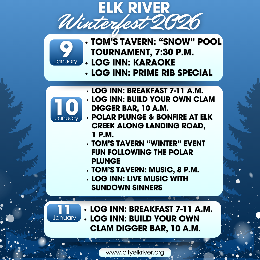Elk River Days ~Spaghetti feed, parade, vendors, golf cart races, cardboard boat races, etc… ~ August 7, 8 & 9, 2026