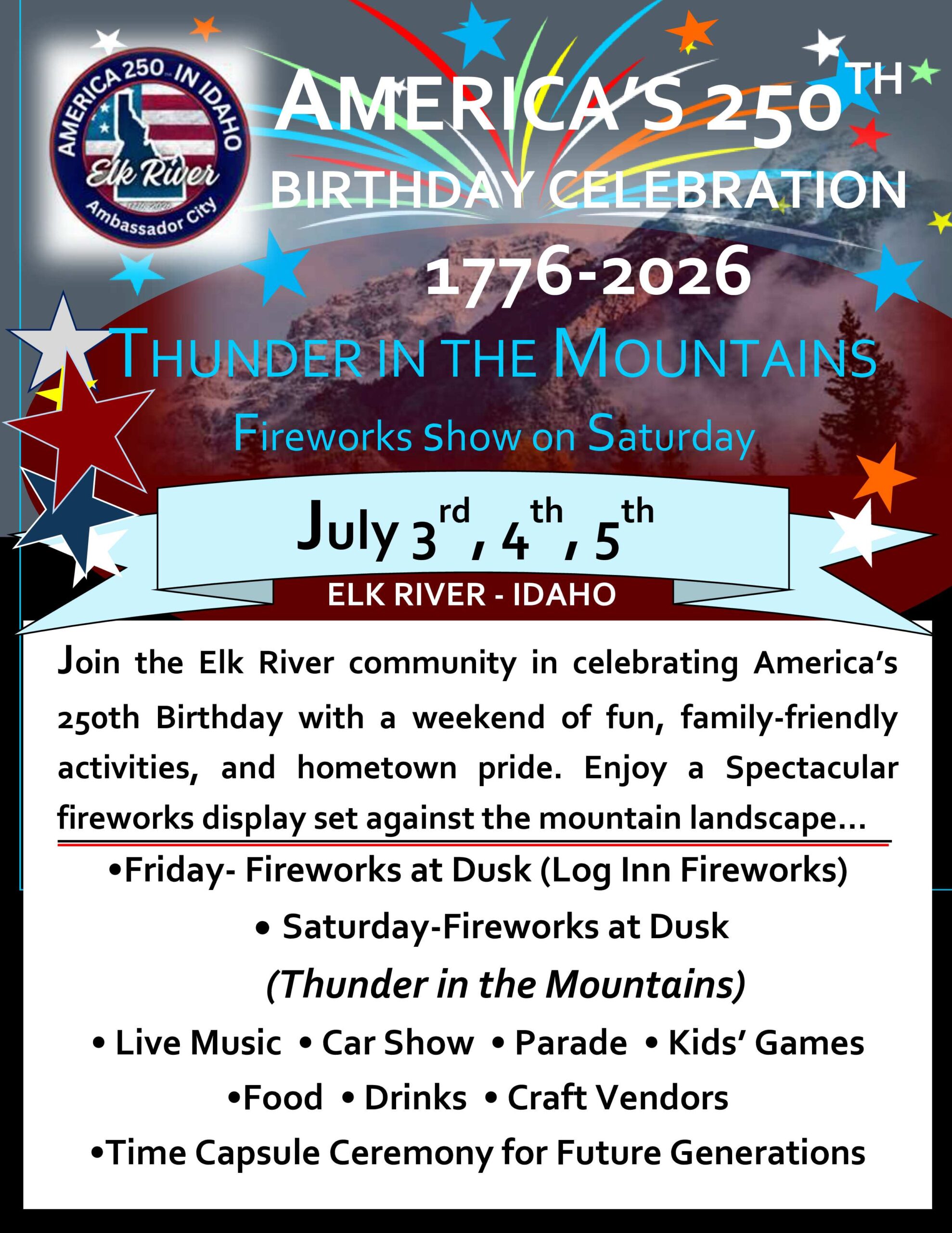 Elk River Thunder in the Mountains Fireworks Show ~ July 4, 2026